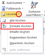 In der Gruppe Bearbeiten finden Sie eine Möglichkeit, die Zellformate zu löschen: